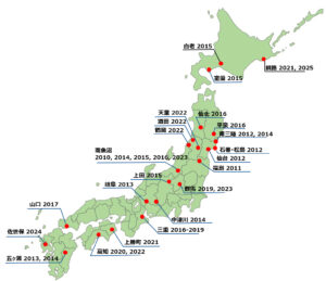 * 地域研修の過去訪問先の地図