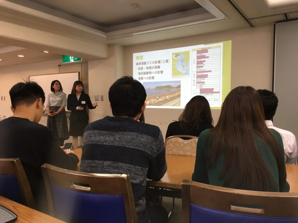 第一部では、2017年8月に行われたアジア研修の報告と、2018年2月にアメリカ研修へと飛び立つプロジェクトメンバーによる中間発表が行われました。アジア研修報告では、訪れたシンガポール、香港、そして日本の共通の社会課題である少子高齢化問題に関する研究成果についての発表がありました。アメリカ研修中間発表では、「利便性と引き換えに私たちが失うもの」というテーマに基づいて環境問題と若者の社会性という視点から研究を行っていることが報告されました。質疑応答の時間では過去のアメリカ研修参加者やアラムナイの方からの鋭い質問や貴重なアドバイスを頂くことができ、研修参加者たちにとって大変有意義な時間となりました。