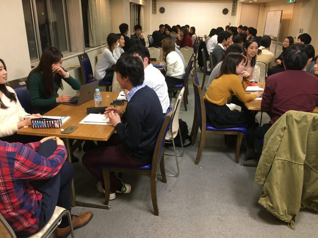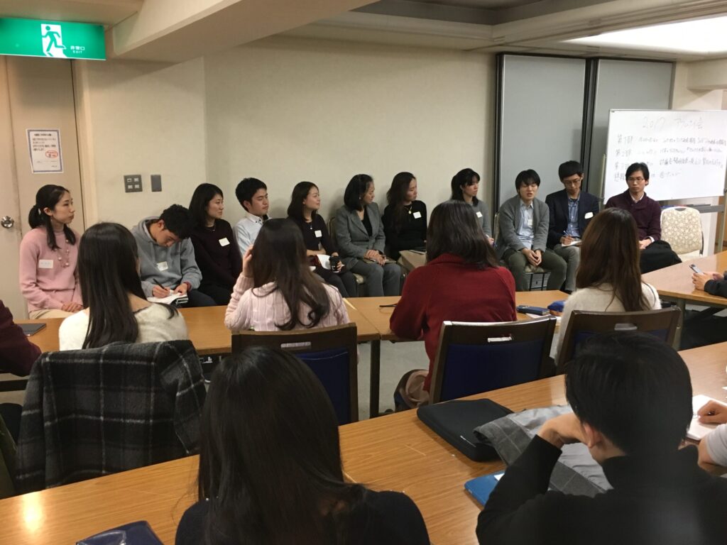 第三部では、『婚姻制度の廃止に賛成か、反対か』について学生、アラムナイ交えて議論を行いました。結婚という制度があることによって、結婚しないという選択が取りづらくなっているという意見があった一方で、結婚があることによって安定した生活を送ることができる女性や子供がいるのではないかという意見も見られました。討論会では、実際に働いているアラムナイの方のワークライフバランスの考え方等も参考に、非常に活発な議論をすることができました。