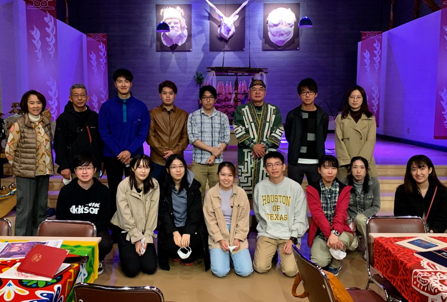 阿寒湖アイヌコタンではアイヌの歴史やアイヌの伝統的な道具などについてご説明いただきました。また、お店ではアイヌの伝統的な文様を施した手ぬぐいやアクセサリーなどが販売されており、メンバーは各々お土産を購入していました。