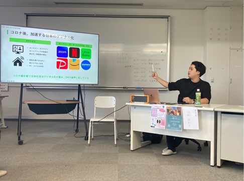 KIPアラムナイの北野裕則氏による「D X時代に求められる人物像」と題した講義とディスカッションが行われた。北野氏は、DX時代に必要なスキルや日本のDXの進捗について語り、その後、科学科目の重要性についてのディスカッションが行われた。ディスカッションでは、文系科目と理系科目の重要性について賛否両論があり、特に高校生の意見の広さと鋭さが際立った。高校生は自分の意見を表現するのがうまく、議論に積極的に参加していた。