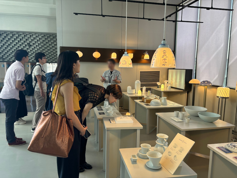 窯業技術センターの吉田氏からは、昭和5年に設立された長崎県窯業技術センターの取り組みの概要を伺った。一般に陶磁器の需要や生産元が減少傾向にある今、窯業を支えるための取り組みの1つに「はりつき支援」があり、年に一度、近隣の50の窯元を訪問し、現状の聞き取り調査を実施することで、地域との結びつきを強化しているという、興味深い話も伺った。歴史ある産業だが、先端技術を取り入れながら進化していて、例えば3Dプリンティング技術を活かした生産が行われる様子も見学した。そうした技術面だけでなく、ふるさと納税の寄付が大幅に増加したことや、SNSを活用したマーケティングにより波佐見焼の購入層が若い世代にも広がっており、特に女性や夫婦、家族連れなど、多様な層に支持されていることは、実際にお話を伺わなければ知ることのできない、面白いお話だった。