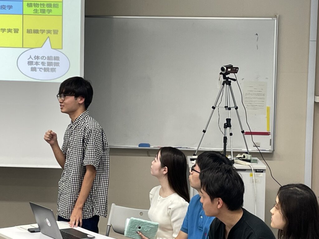 研修最終日には、佐世保高専生による研究発表が行われた。この研究発表によって高等専門学校では、専攻科目だけでなく、課外活動として、地域との連携した、実践的な学びを行っていることが分かった。例えば、「長崎つなぐっど」は長崎の県産品を題材に商品企画から商品販売までを行っている。実際、どの企業に商品開発を頼むか、どのような年齢の人に買われるか、類似品はないかを考え、SNSなどのマーケティングなどの活動も行っていることが分かった。実際に商品を買ってくれる方には地域の方々も多いと話しており、地域の方も高専生を応援する気運があると感じた。専門領域に限らず、企業と連携して企画から販売まで行うことにより、学生のうちから社会全体のことを実践的に学べる環境が整っていると感じた。他の研究発表内容においても、ARやIoTを活用した実用的な技術や、微生物発電等、早い段階から高い技術力・専門性を身に着けて取り組んでおり、高専ならではの強みを実感した。